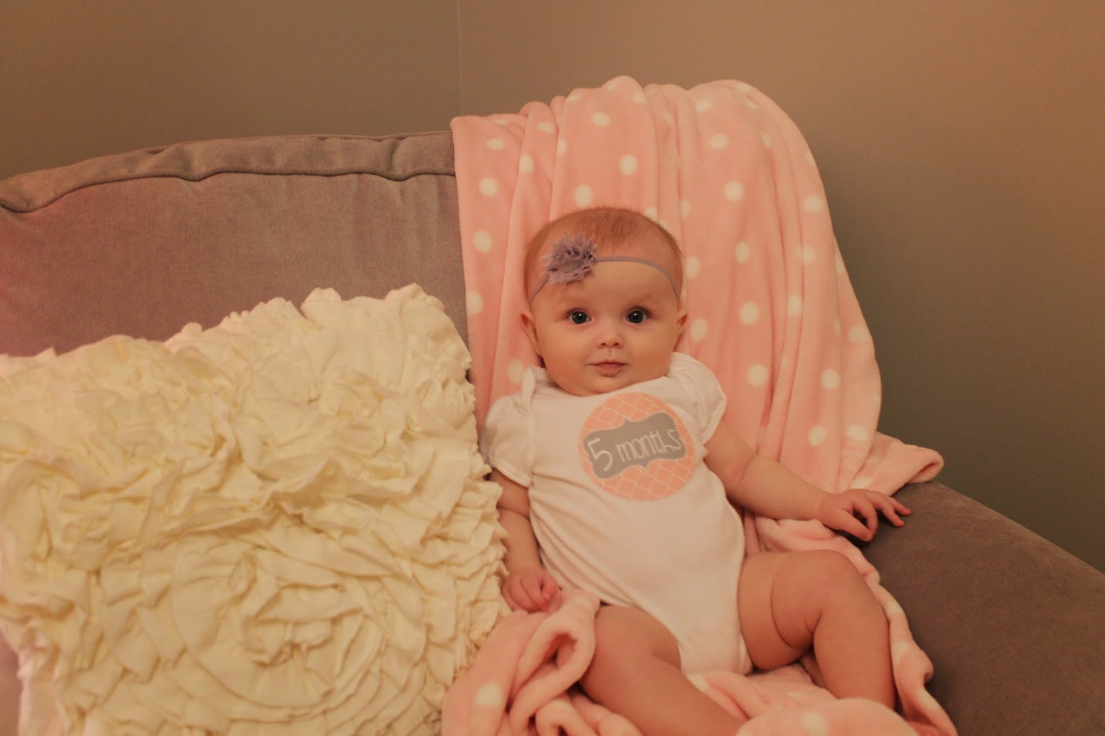 Emery is FIVE months old! I think this has been the fastest month yet and I think we've seen more changes this month than the other months so far! It seems like every single day she's doing something new and Daniel and I look at each other like, "Did you just see that?!" The miracle that she is will never cease to amaze us. How people have children and watch them grow yet still don't believe it God is just beyond us.